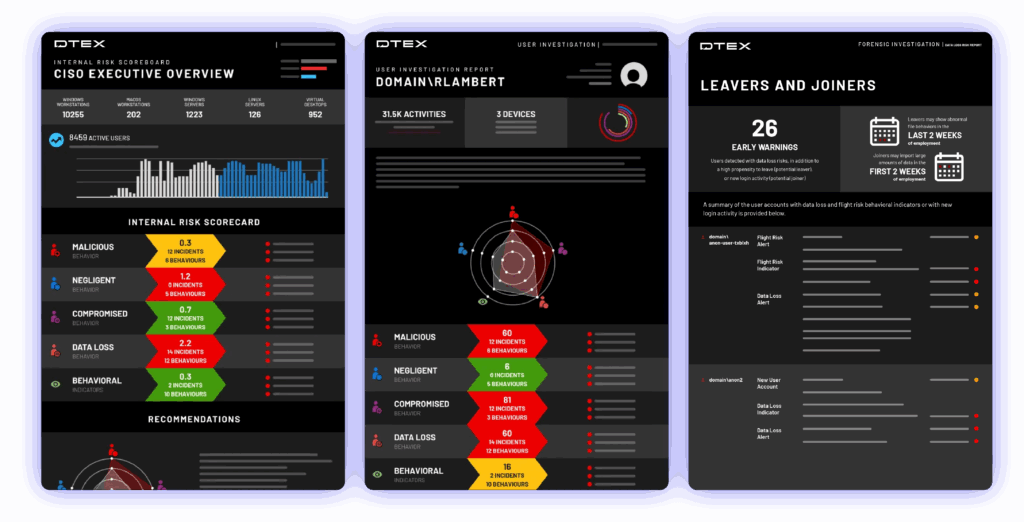DTEX DMAP+ technology collects, correlates and analyzes in three distinct data layers, powering the process for AI-driven risk profiling.