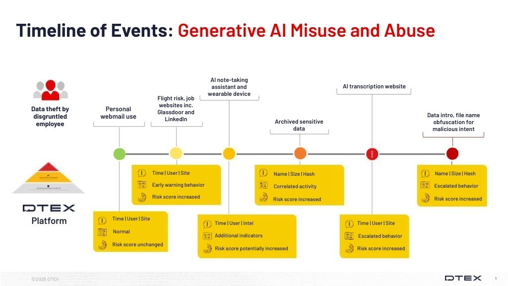 In our customer-facing version, we detail our investigation, beginning with the initial alert. The disgruntled employee demonstrated both technical skill and intelligence by aggregating data using Generative AI note-taking tools, both on and off corporate devices. They exfiltrated this data by employing their personal account for these cloud-based services.